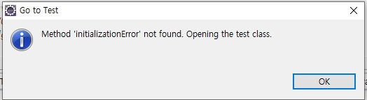 Method 'initializationError' not found. Opening the test class.