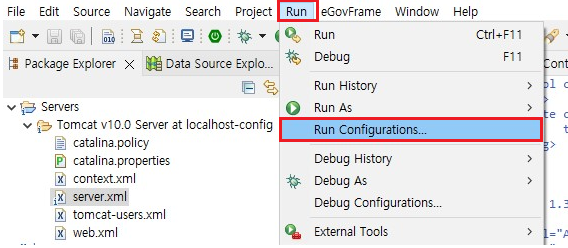 1. Run -> Run Configurations...
