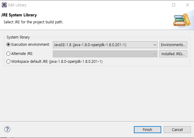 4. 이클립스 실행 후 Build Path를 원하는 JDK 버전으로 설정하고 구동한다.
