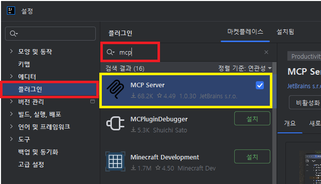 2. IntelliJ에서 MCP 서버 플러그인 설치