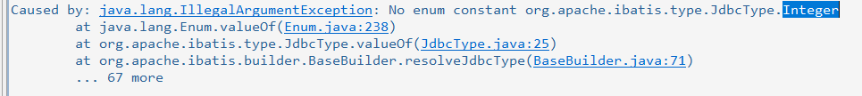 오류 No enum constant org.apache.ibatis.type.JdbcType.Integer 원인 mapper 내에 jdbcType 잘못 입력.. --mapper.xml --jdbcType=Integer #{컬럼,javaType=java.lang.Integer,jdbcType=Integer,mode=IN} 해결방법 jdbcType 정의된 값을 정확히 사용한다. JdbcType Mybatis Oracle MySql JdbcType ARRAY JdbcType BIGINT BIGINT JdbcType BINARY JdbcType BIT BIT JdbcType BLOB BLOB BLOB JdbcType BOOLEAN JdbcType CHAR CHAR CHAR JdbcType CLOB CLOB CL..